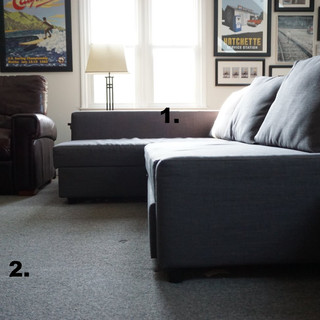 1. Decorative Pillows: We need some some pillows to pull in the colors and dress up the sofa.